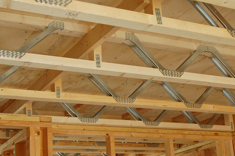 Leichtgewicht: Kombination aus kleineren Holzquerschnitten mit leichtem Metallsteg ergibt ein leichteres Produkt als herkömmliche Holzäquivalente.